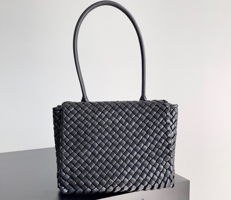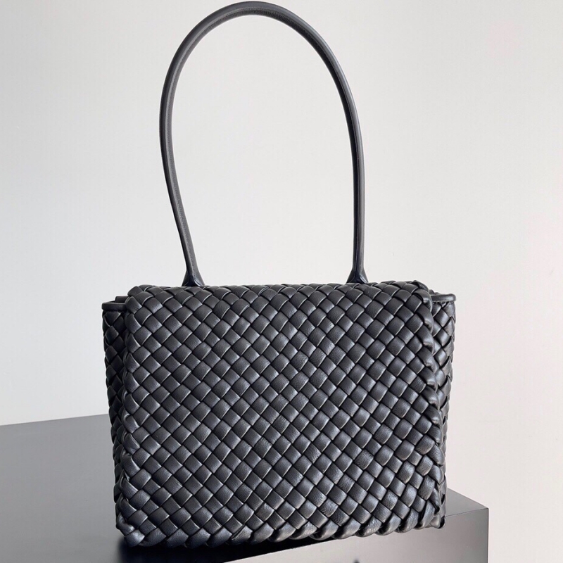 • Bottega Veneta 寶緹嘉 Intreccio編織皮革 Patti手提包 BV腋下包 黑色