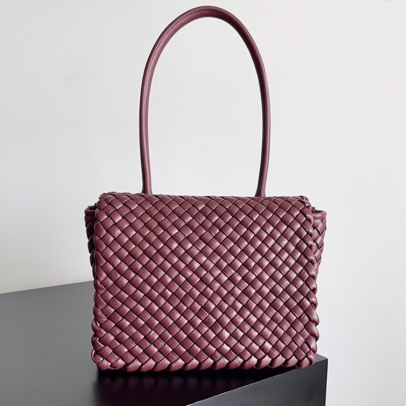 • Bottega Veneta 寶緹嘉 Intreccio編織皮革 Patti手提包 BV腋下包 酒紅色