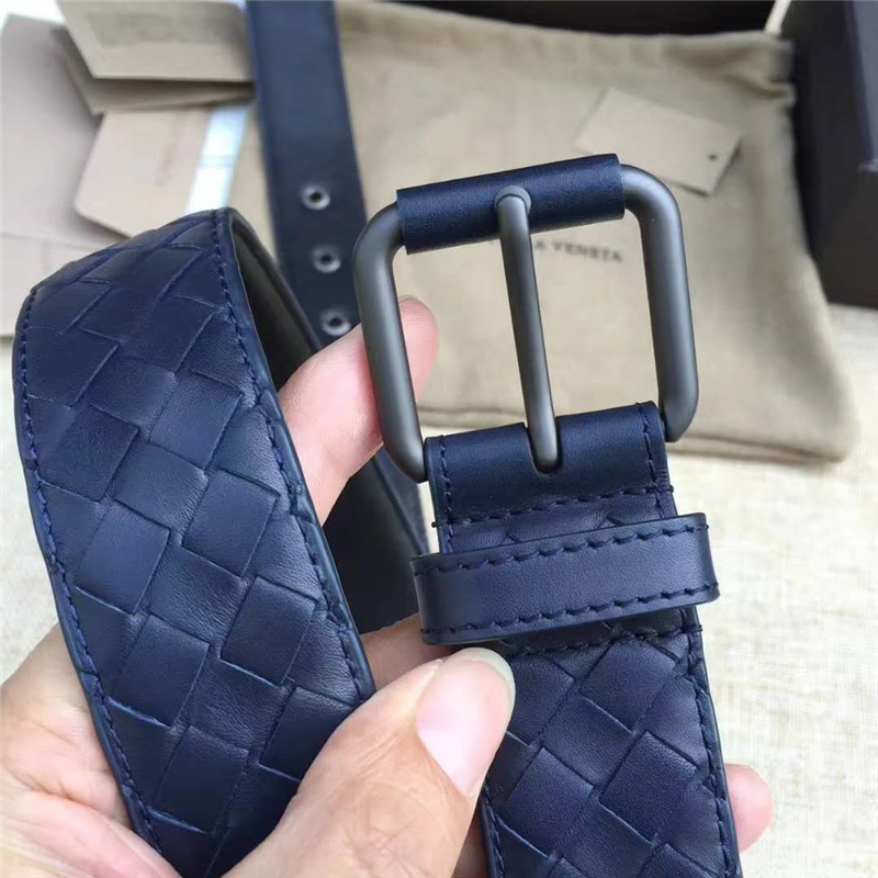 BV寶緹嘉 手工編織皮帶 2017新款 低調(diào)奢華 針扣休閑皮帶 藍(lán)色