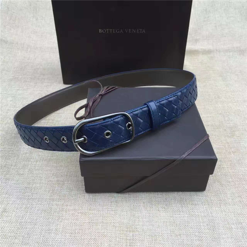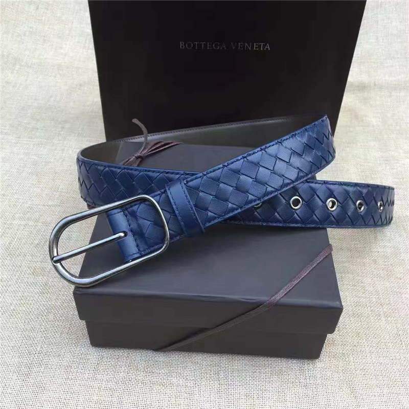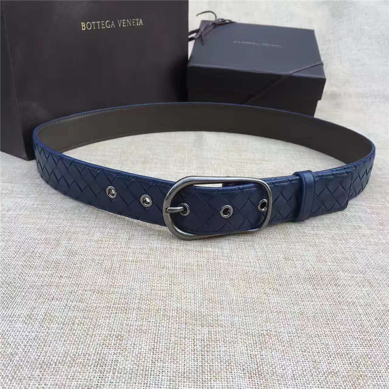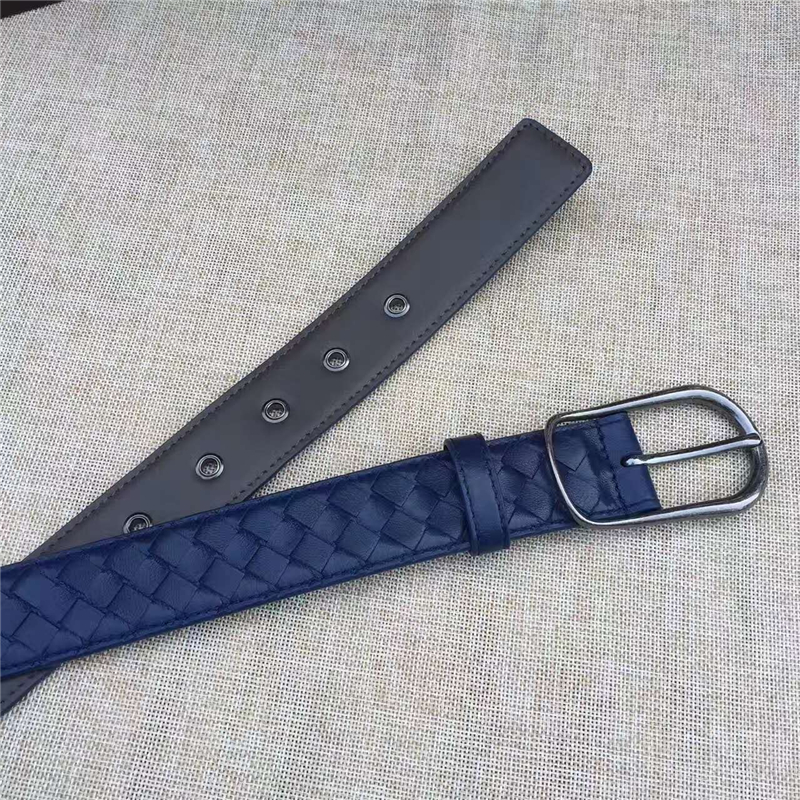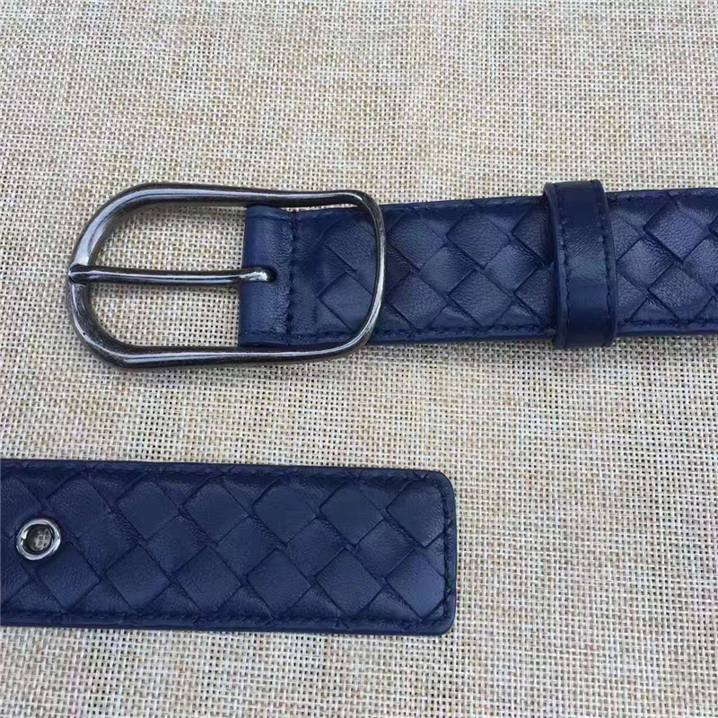 - BV寶緹嘉 017專柜同步上市 手工編織皮帶 低調(diào)奢華 針扣休閑皮帶 藍(lán)色