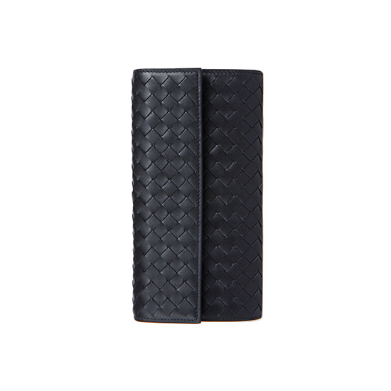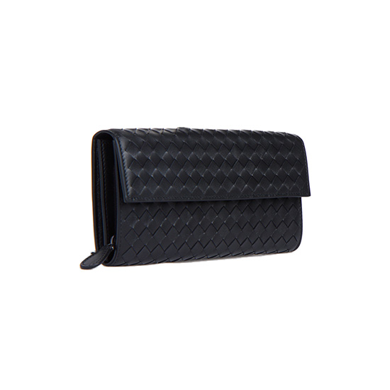 150509 Bottega Veneta寶緹嘉 黑色 編織 女士長款按扣開合錢包