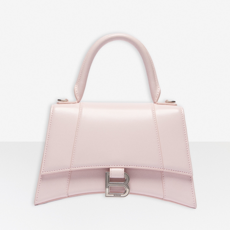 • 5935461 巴黎世家女包 Hourglass淺粉色閃亮光滑小牛皮迷你手提包