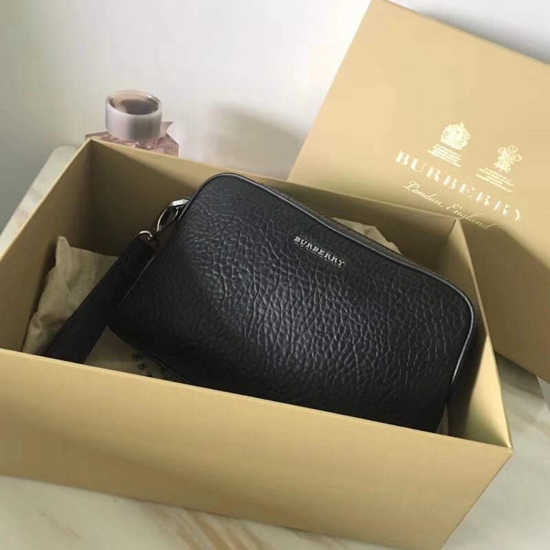 • Burberry新款男包 小牛皮荔枝紋 巴寶莉手拿包 多功能手包 黑色