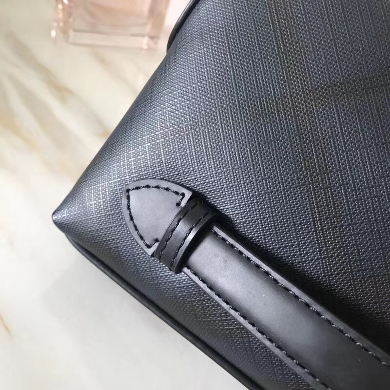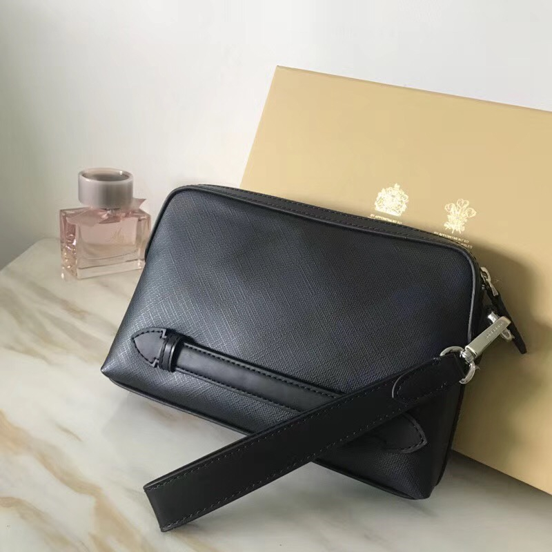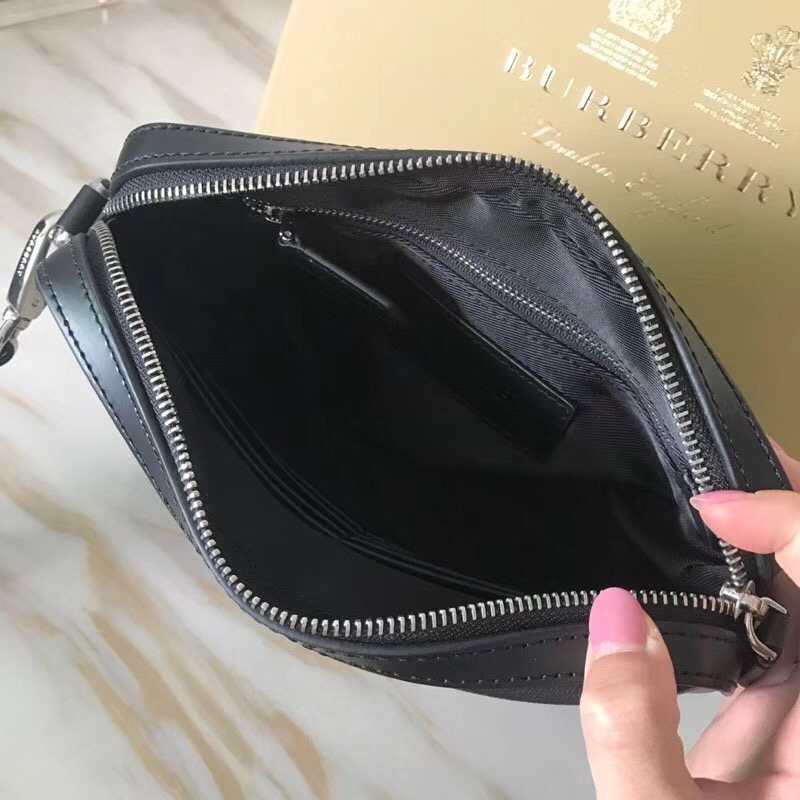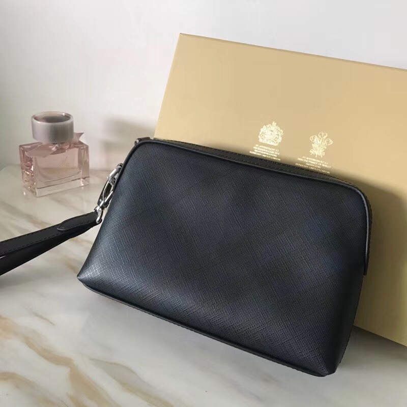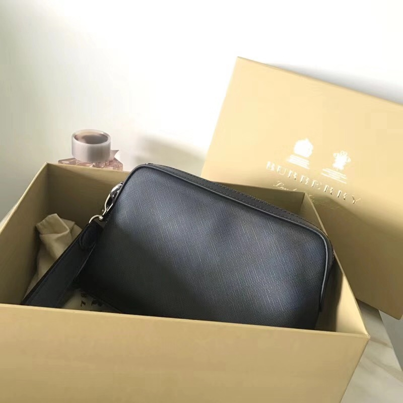 • Burberry新款男包 小牛皮London格紋 多功能 巴寶莉男士手拿包 暗藍色