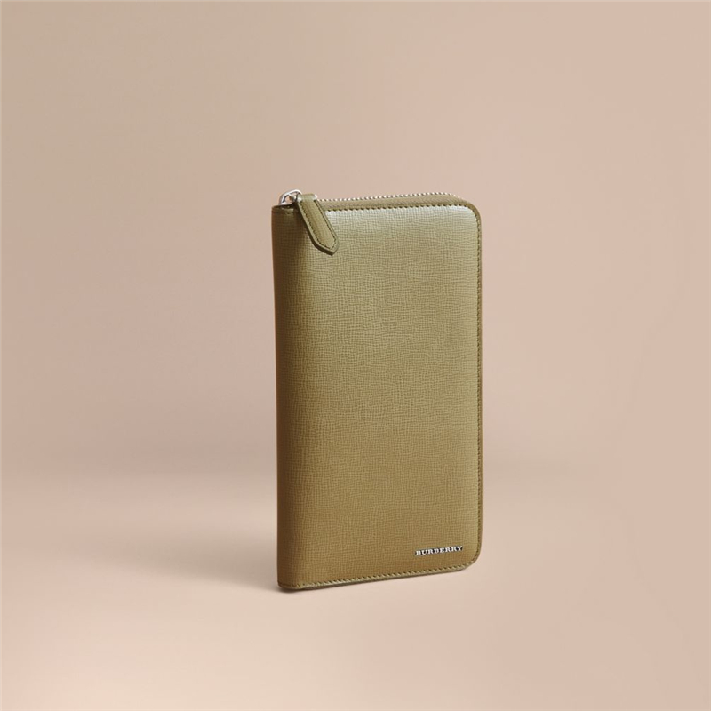 40520931 巴寶莉 London 光滑皮革 全拉鏈 巴寶莉錢包 旅行錢夾 橄欖綠