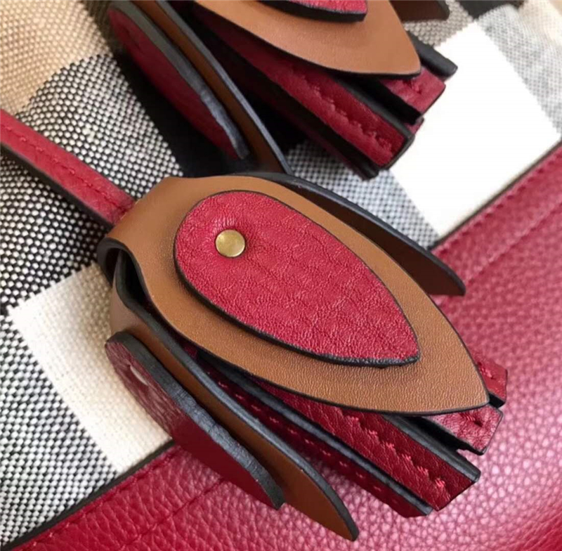 - Burberry手提包 巴寶莉女包 最新款格紋水桶包 可拆式小包 紅色