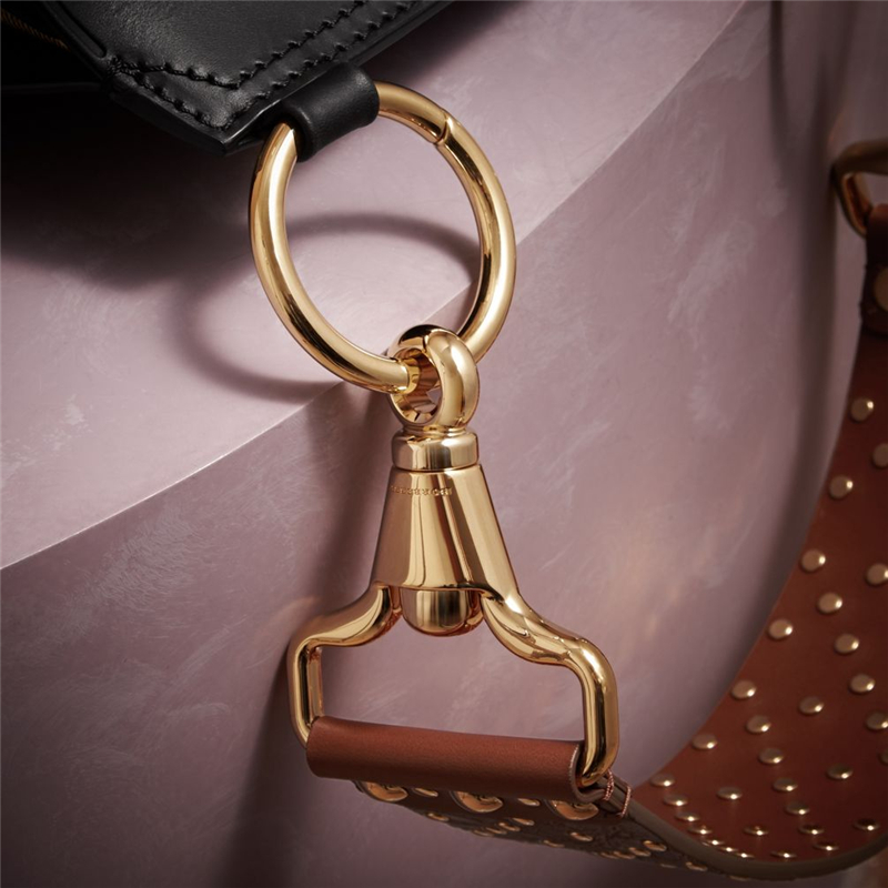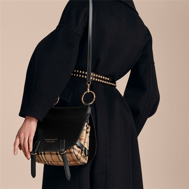 - 詳細(xì)介紹:英倫馬術(shù)風(fēng)格時裝秀款肩背包,臻選光滑馬勒皮革和經(jīng)典的 Haymarket 格紋于意大利精制而成,搭配鉚釘綴飾短吻鱷皮肩背帶。線條柔和且功能實(shí)用的包型,完美演繹傳統(tǒng)英國馬具制作工藝,外部細(xì)節(jié)設(shè)計(jì)包括功能型實(shí)用扣環(huán)、刻槽與拋光邊緣。肩背包采用雙隔層結(jié)構(gòu),可輕松容納隨身物品;配有單肩背帶與長款斜挎背帶,方便隨意變換造型。
