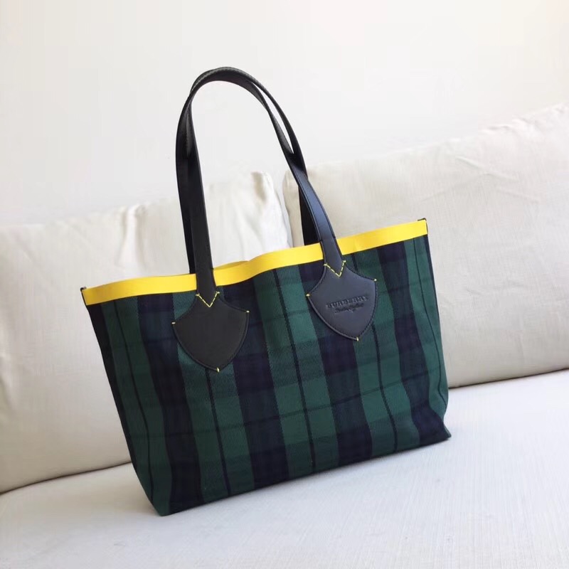 40697961 Burberry 雙面兩用 The Giant Canvas格紋拼皮革 托特包 綠和軍藍