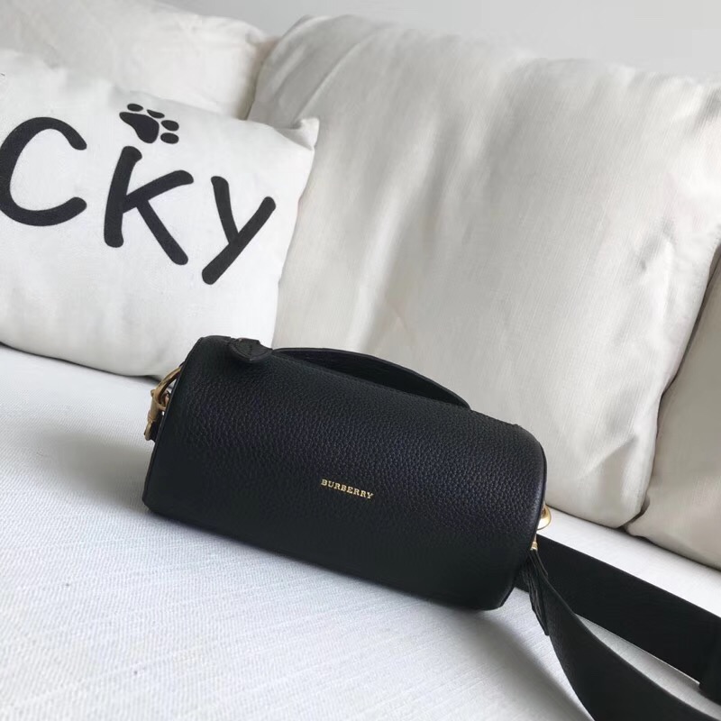 • 40751031 巴寶莉 The Barrel 巴瑞爾包 圓柱形 皮革背包 黑色