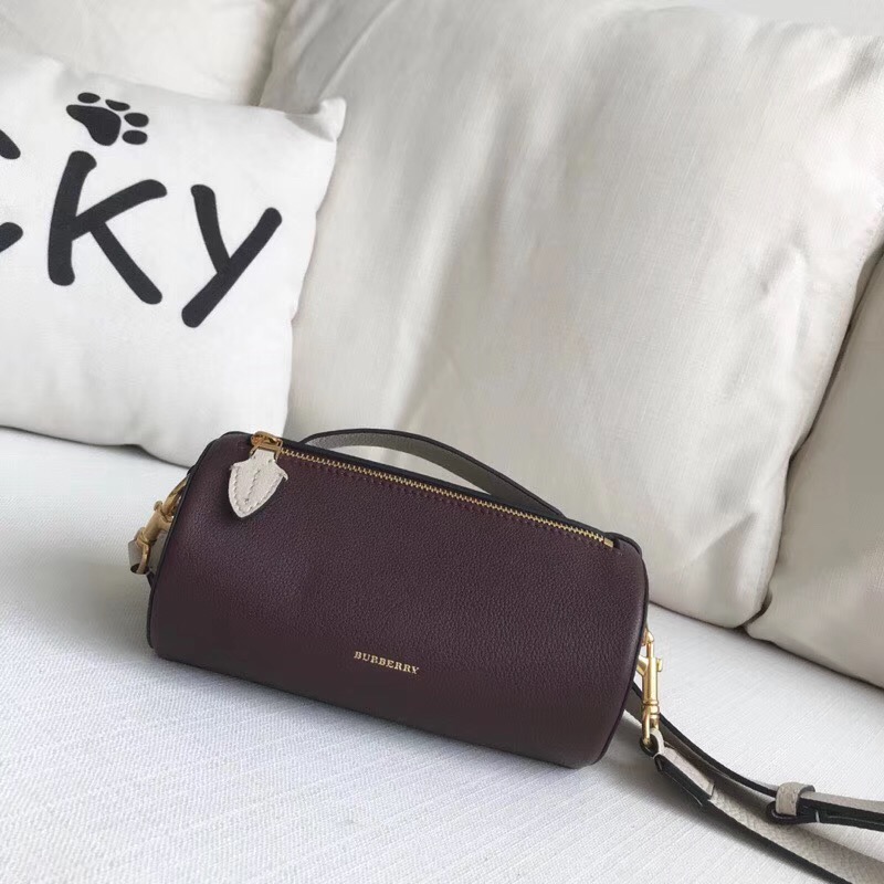 • 40751031 巴寶莉 The Barrel 巴瑞爾包 圓柱形 皮革背包 紫配白