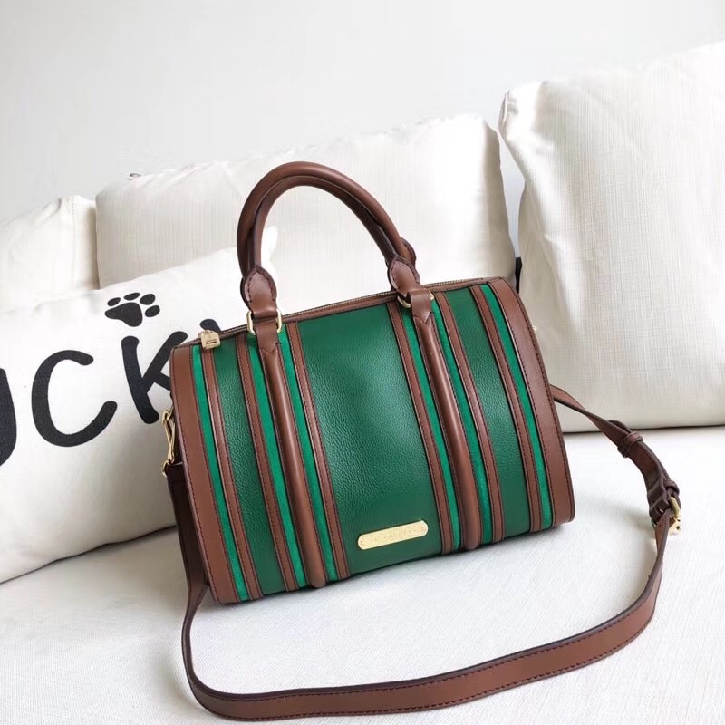 Burberry新款 戰(zhàn)馬印花 波士頓包 進(jìn)口小牛皮 巴寶莉手提包 綠色