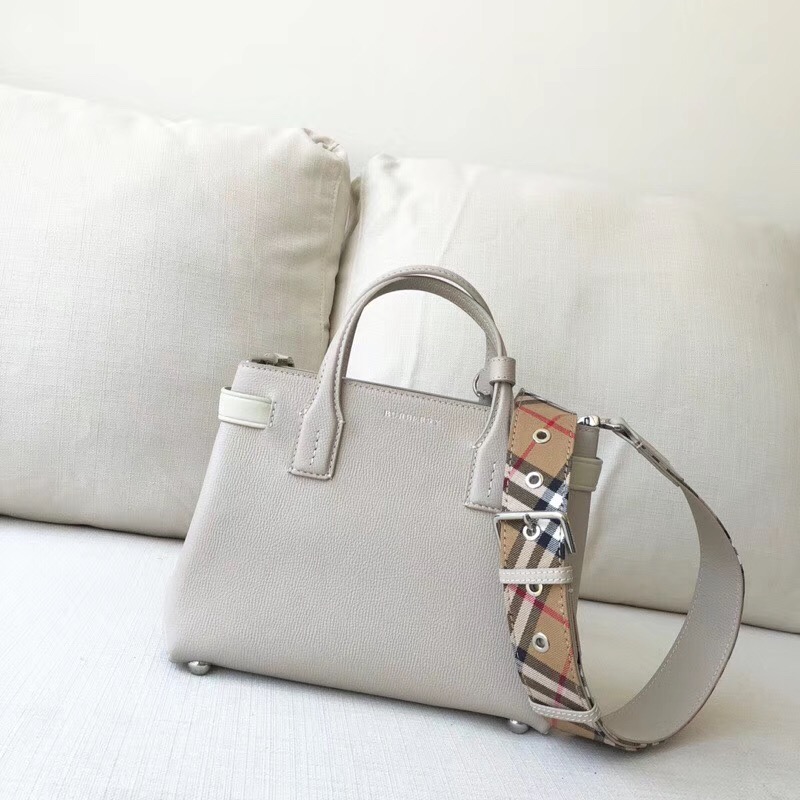40800741 巴寶莉 The Banner 小號 皮革拼Vintage格紋 班納手袋 白色