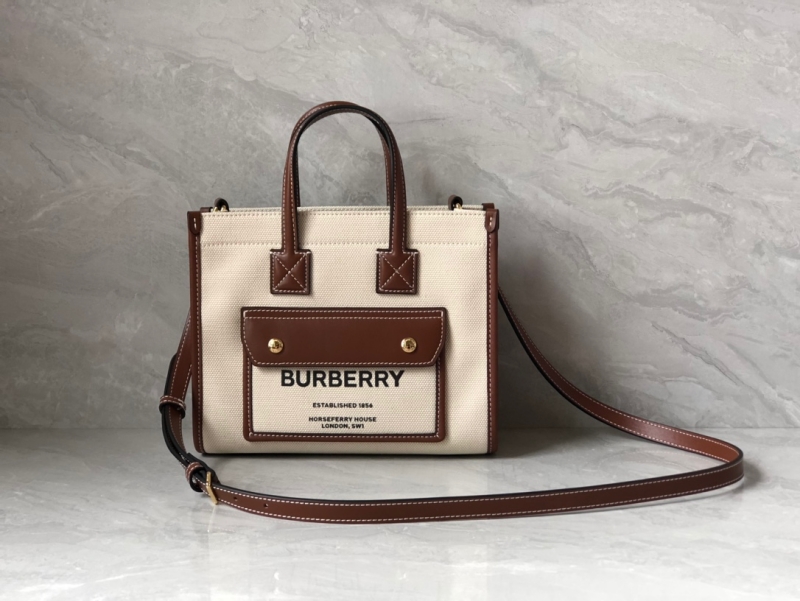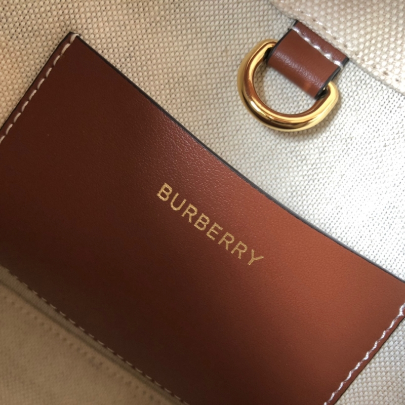 80441431 巴寶莉Burberry Freya 迷你雙色帆布拼皮革芙蕾雅托特包 巴寶莉女包 棕色