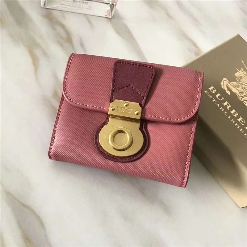 40554701 巴寶莉 DK88系列 拼色 Trench 皮革 短款錢夾 櫻花粉拼鍺色