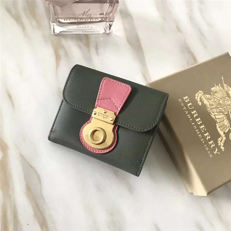 40554702 巴寶莉 DK88系列 拼色 Trench 皮革 短款錢夾 綠拼粉