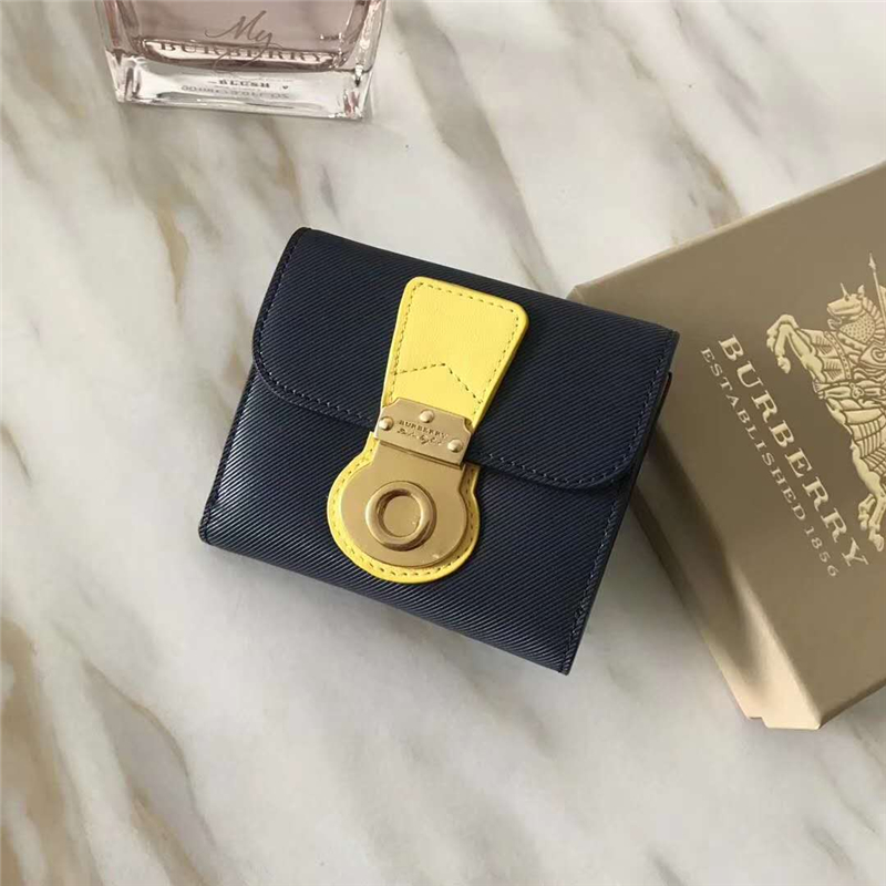 40554703 巴寶莉 DK88系列 拼色 Trench 皮革 短款錢夾 黑拼黃