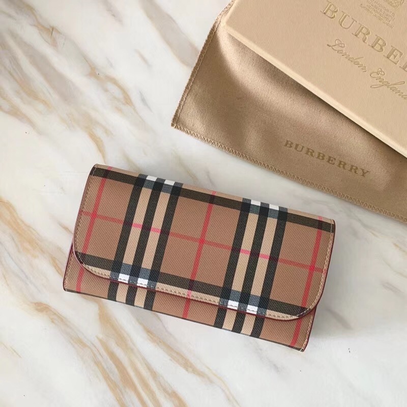 >Burberry|博柏利>Burberry錢包>Burberry女士錢包> 40734271 Burberry女款錢包 Vintage格紋拼皮革 撞色 巴寶莉長款錢夾 緋紅商品描述