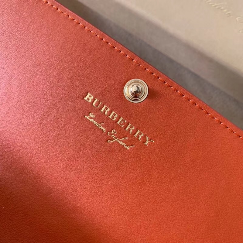 40734271 Burberry女款錢包 Vintage格紋拼皮革 撞色 巴寶莉長款錢夾 橘色