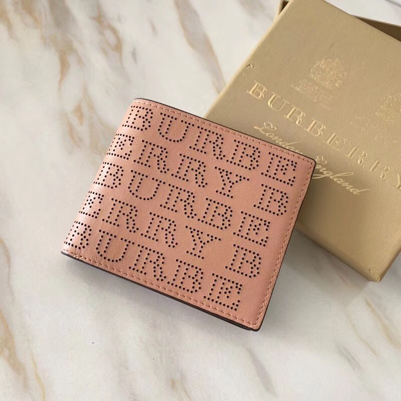 Burberry巴寶莉 激光沖孔式紋案 皮革 兩折短款錢夾 淺卡其