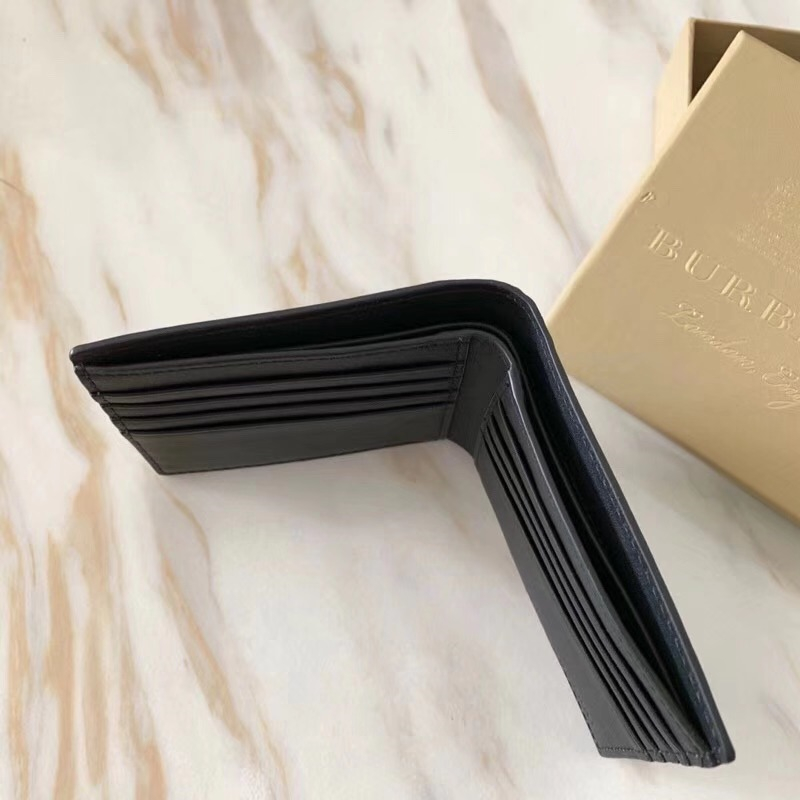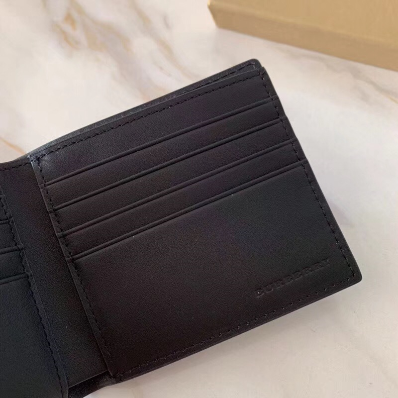 Burberry巴寶莉 激光沖孔式紋案 皮革 兩折短款錢夾 黑色