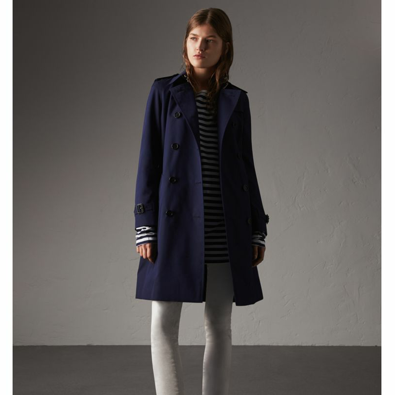 當前位置: 首頁>Burberry|博柏利>Burberry女裝> 40560351 Burberry巴寶莉 棉質嘎巴甸 長款 防滲雨型 Trench 風衣 藍莓色