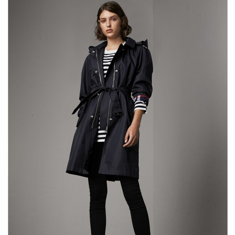 當前位置: 首頁>Burberry|博柏利>Burberry女裝> 40611181 巴寶莉 棉質混紡 輕便大衣 女士中長款風衣 含可拆式連帽 海軍藍