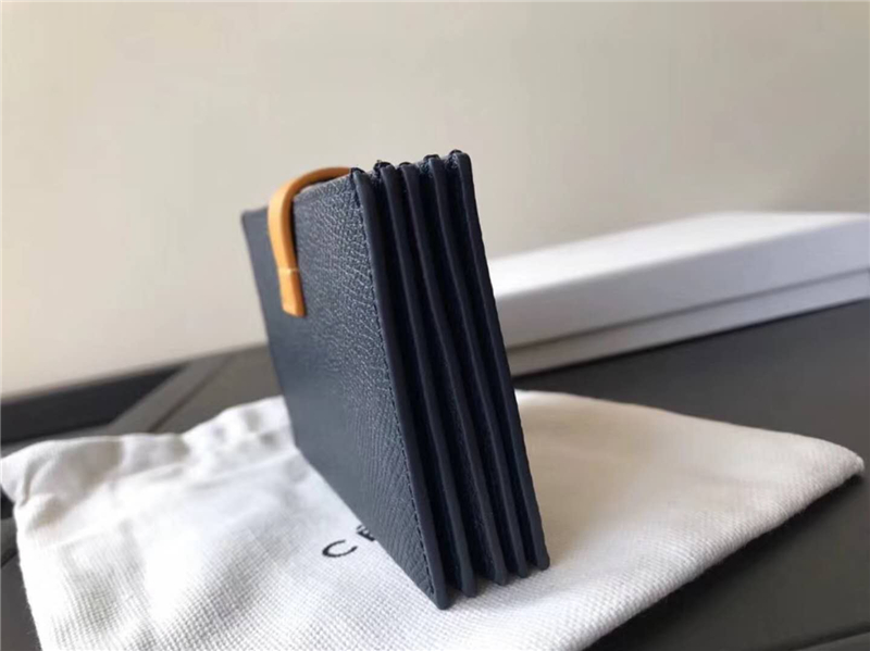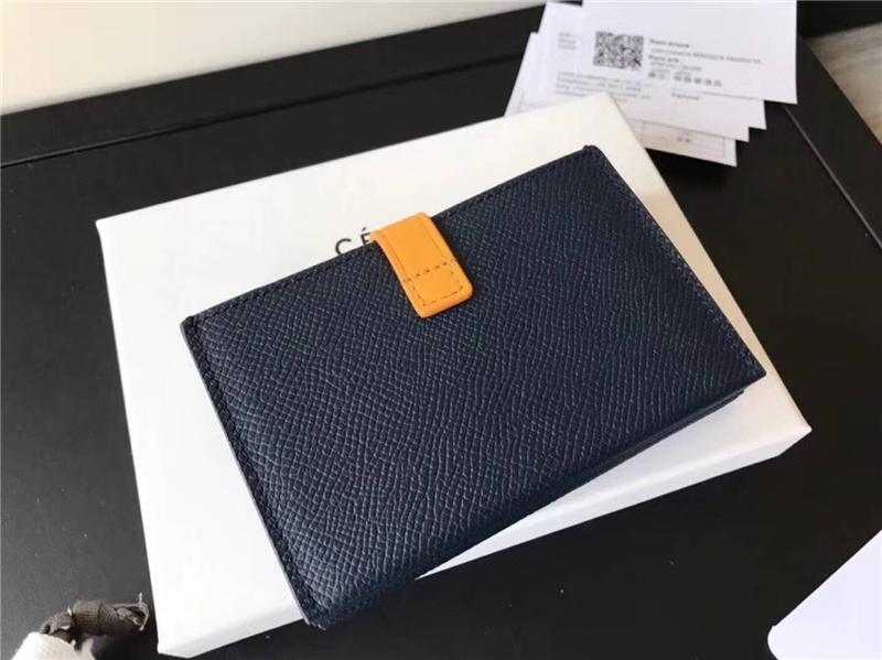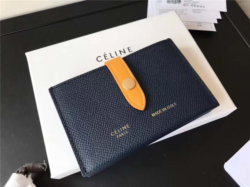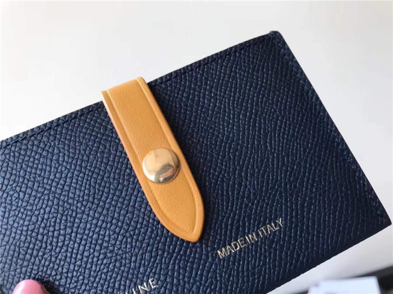 • 104323 Celine賽琳 Strap 粒面拼亮澤小牛皮 風琴褶 卡包 藍配橙