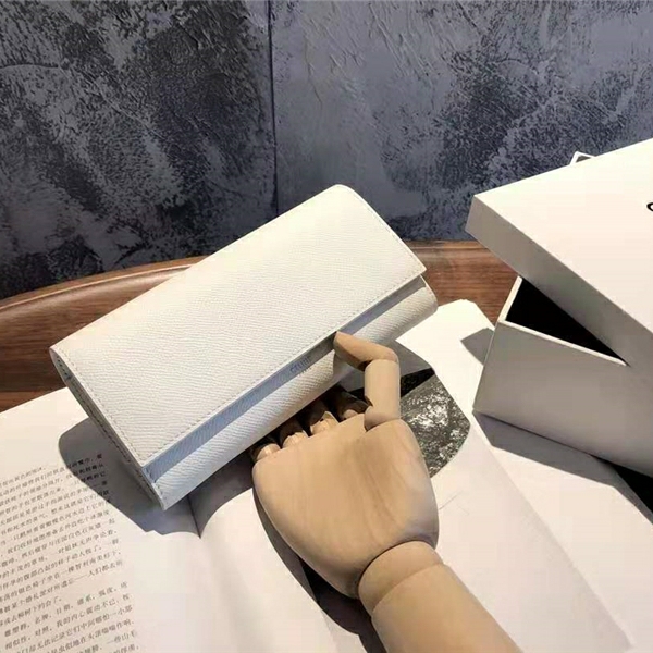 10B563 Celine錢包 壓紋粒面 小牛皮 大號 Celine翻蓋長款錢包 白色