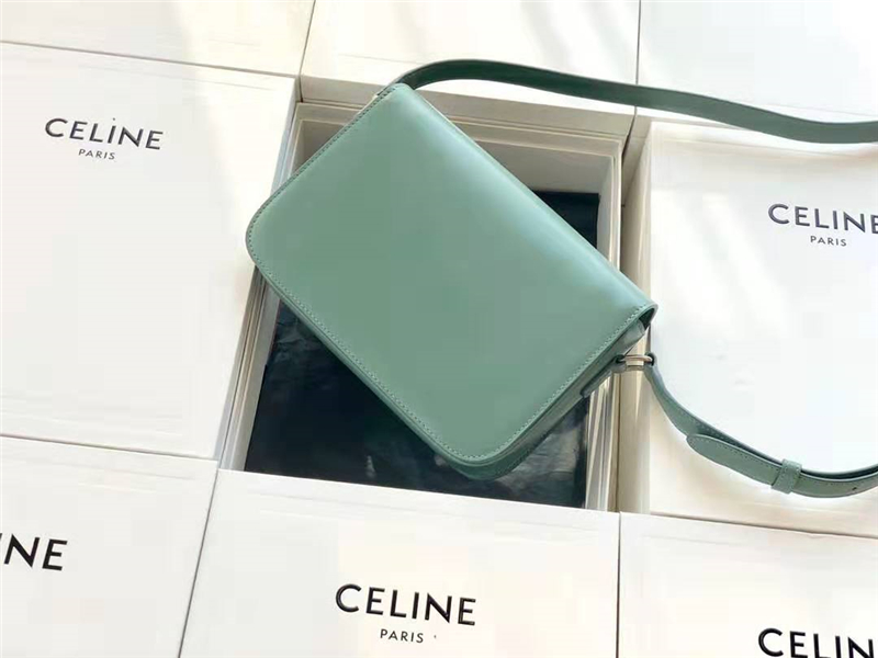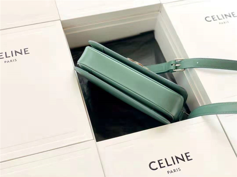 • 187363 Celine包包 Triomphe系列 亮澤小牛皮 倒雙C黃銅鎖 賽琳盒子包 青瓷色