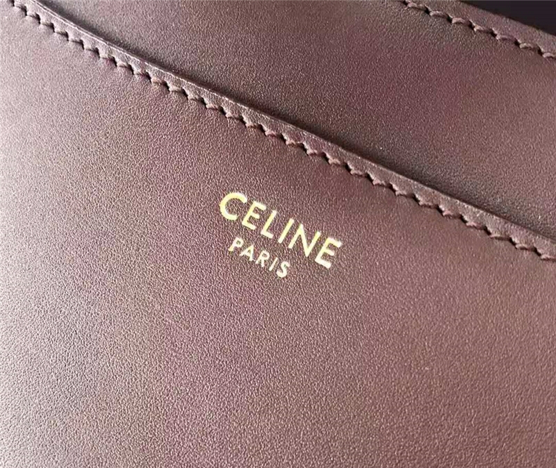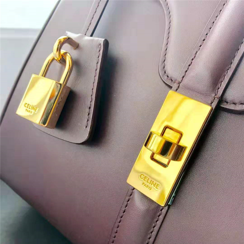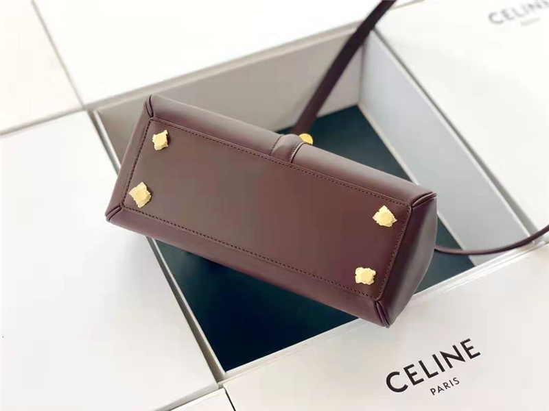 188003 Celine包包 賽琳女包 19新款 金屬鎖扣 小號 平紋小牛皮 Celine手提女包 深棕色