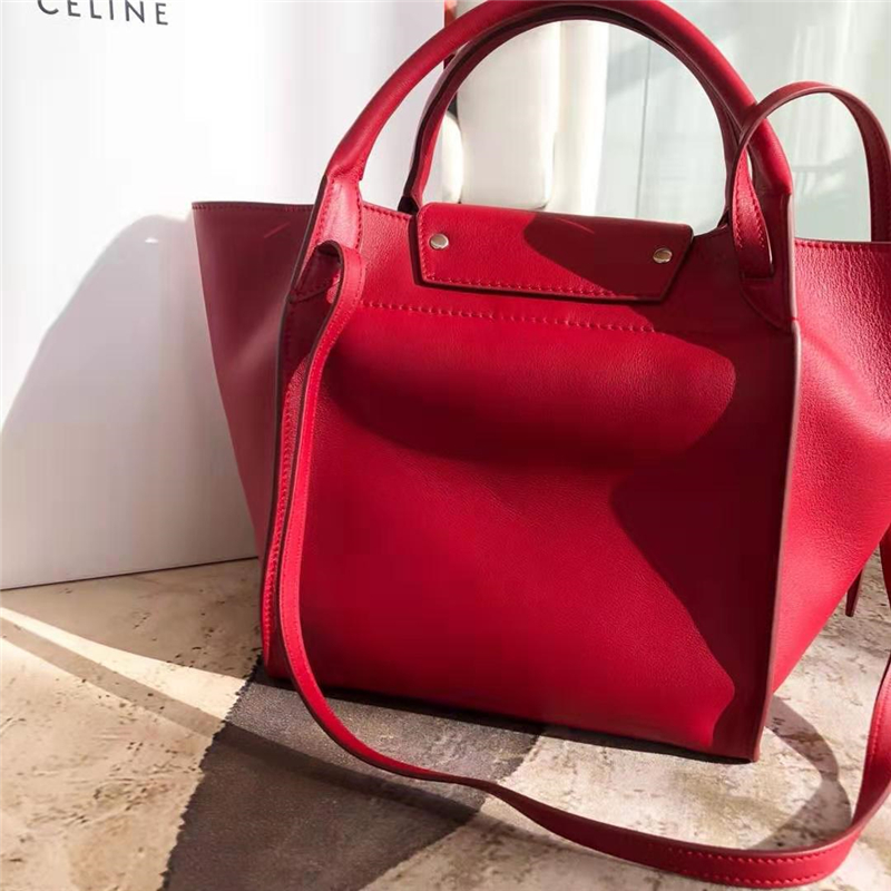 • Celine BIG BAG小號配長肩帶光滑小牛皮手袋 Celine大容量包 紅色