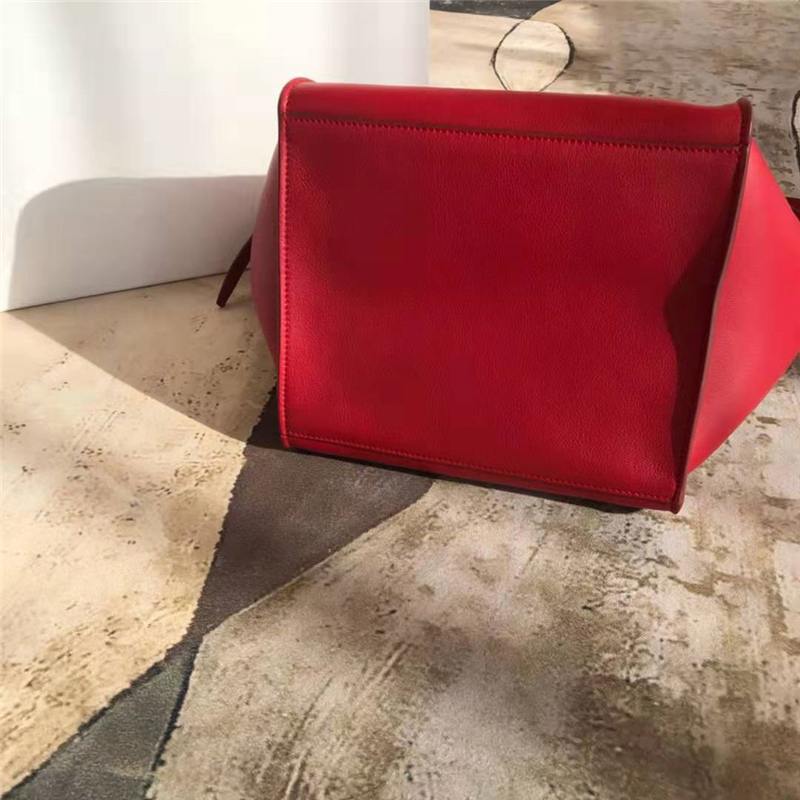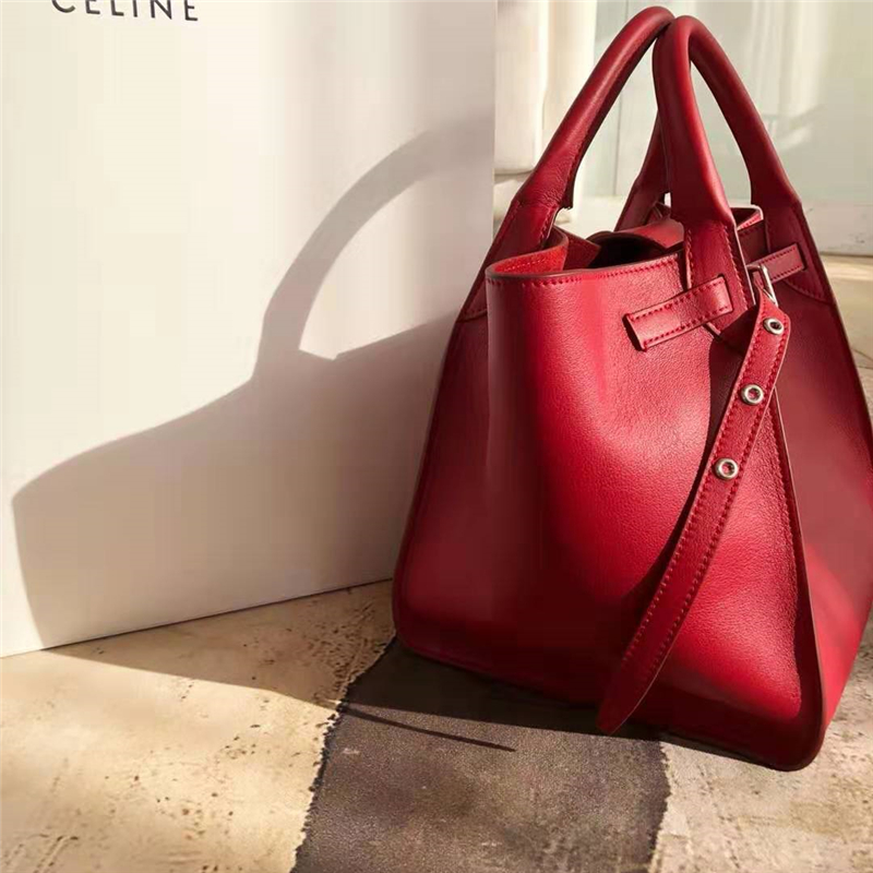Celine BIG BAG小號配長肩帶光滑小牛皮手袋 Celine大容量包 紅色