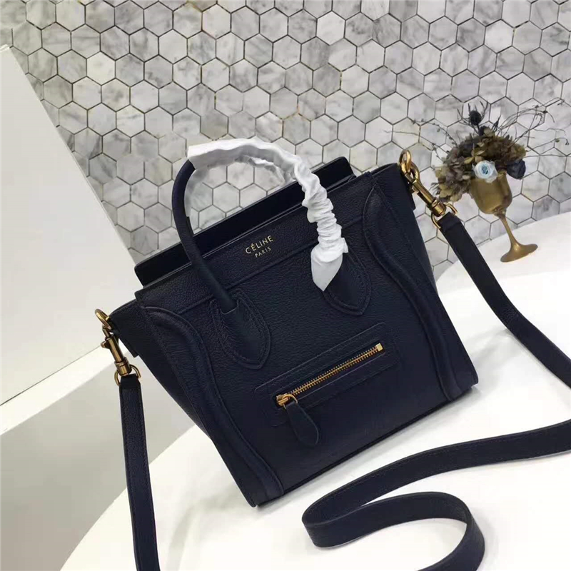 • 2017賽琳 celine笑臉包 囧臉包真皮 中號 頭層牛皮 翅膀手提包 藏藍色