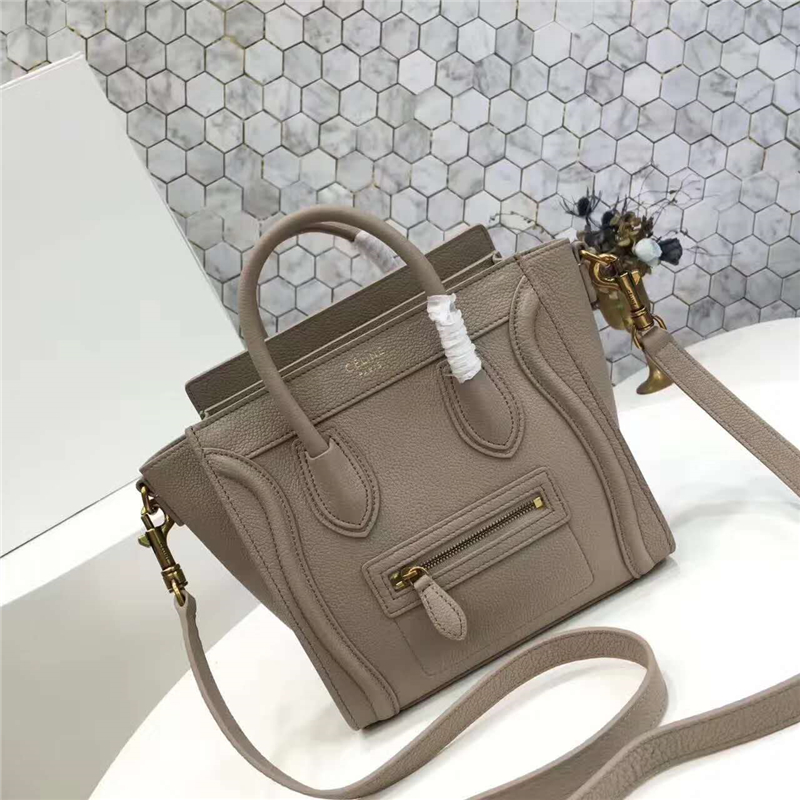 2017賽琳 celine笑臉包 囧臉包真皮 中號 頭層牛皮 翅膀手提包 淺灰色