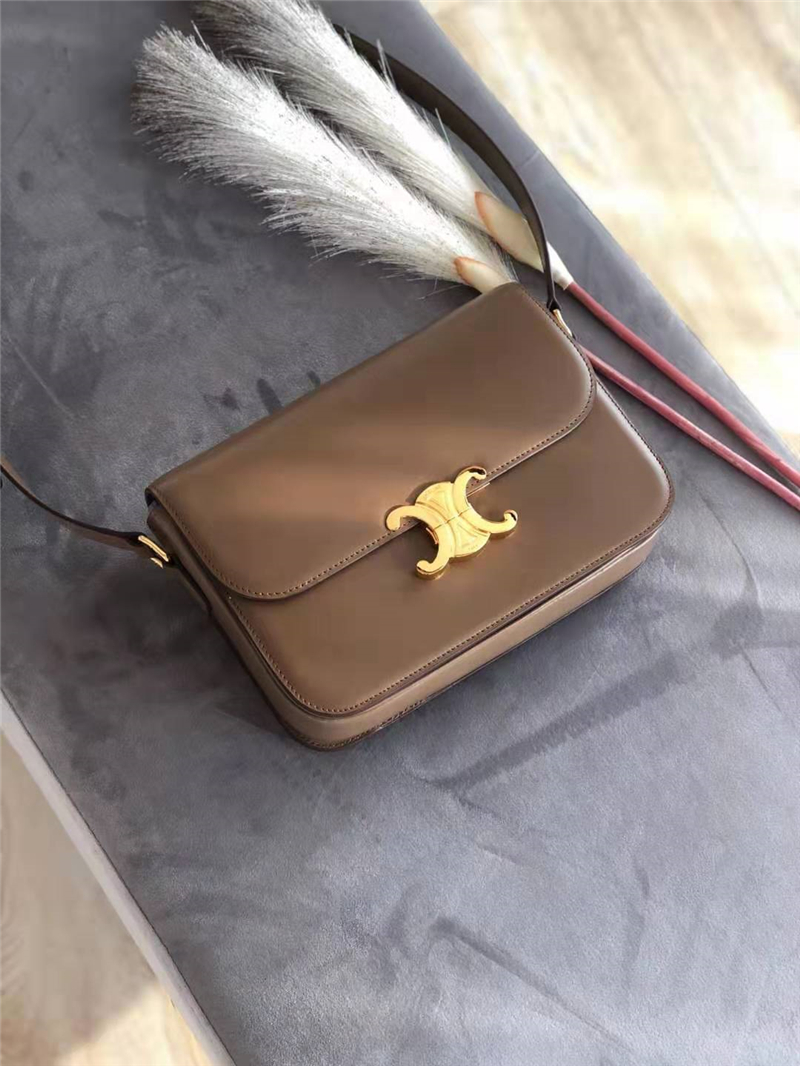 • Celine包包 賽琳女包 Triomphe系列 倒雙C黃銅鎖 中號(hào) 棕色