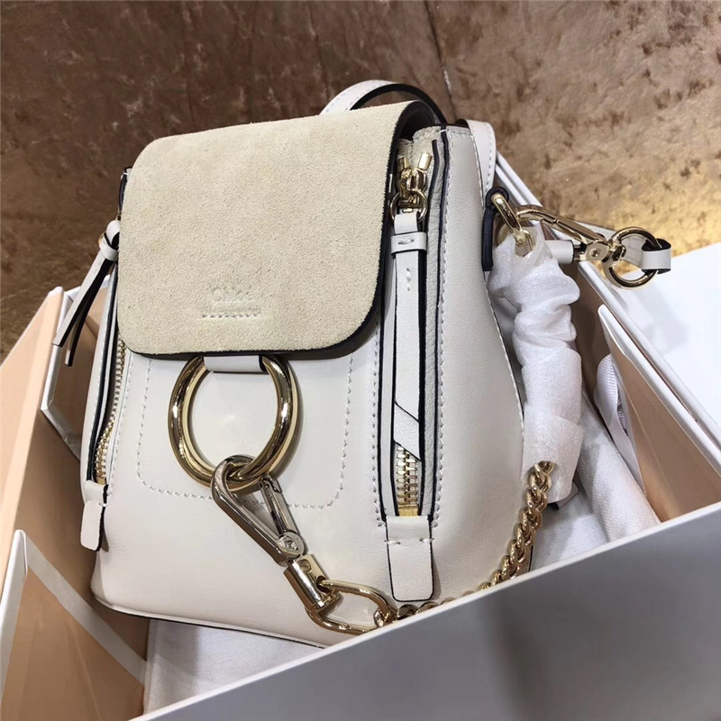 - 1232 Chloe Faye雙肩包 小牛皮麂皮 珂洛伊背包 Chloe迷你雙肩包 米白