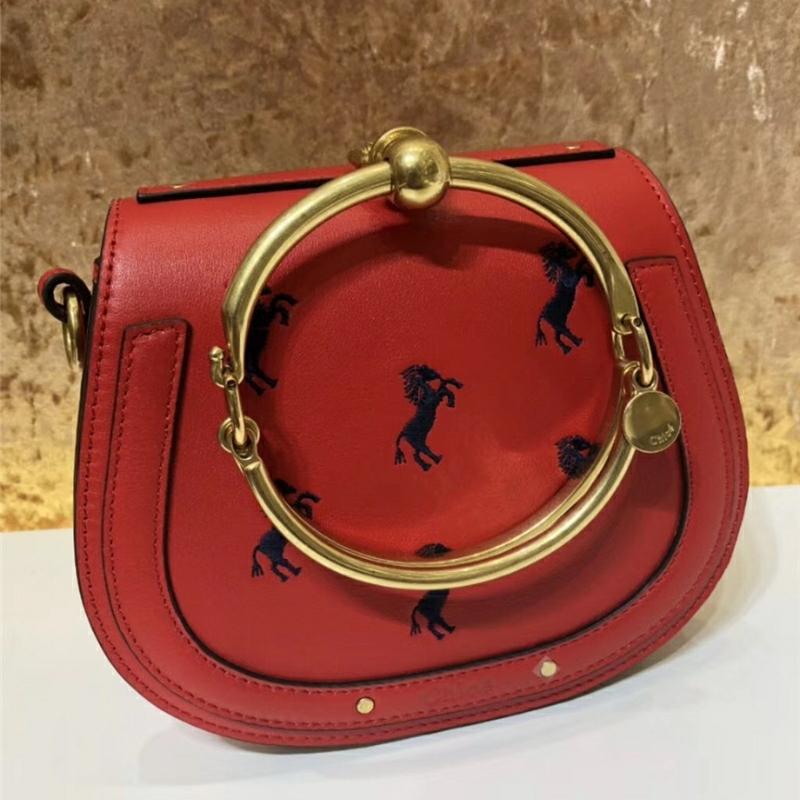 • Chloe Nile IT包 進口牛皮 小號 小馬刺繡圖案 手鐲式提手 珂洛伊手袋 紅色