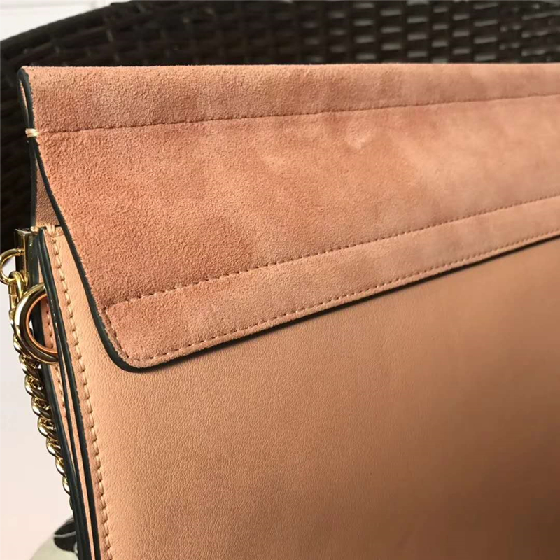 - 70652 Chloé Faye 珂洛伊 大號(hào) 牛皮配磨砂皮 圓環(huán)鏈條 單肩斜挎包 藕粉色