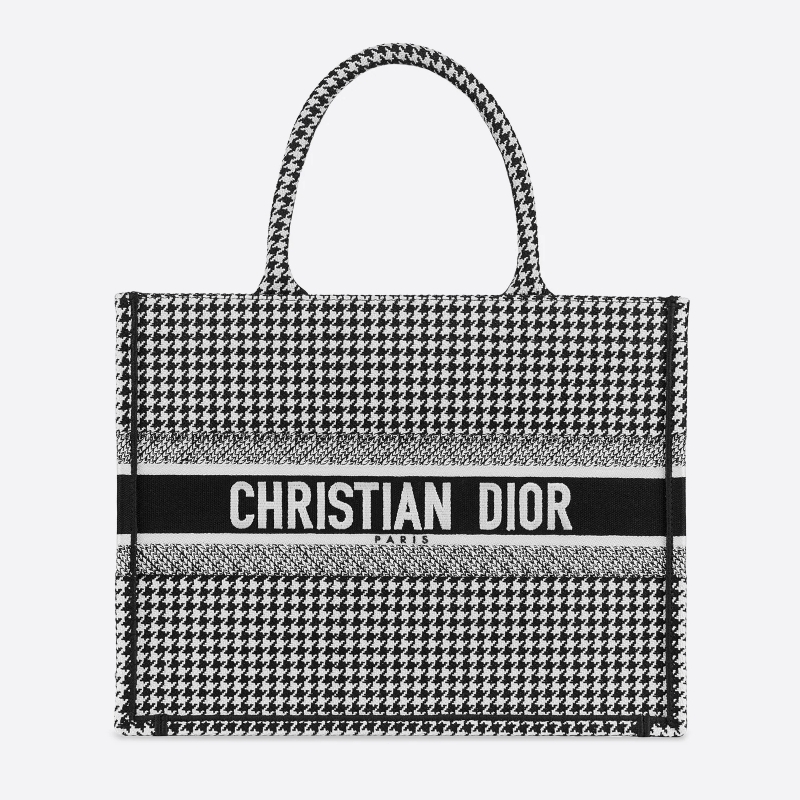 • M1296 Dior Book Tote 小號手袋 黑白千鳥格刺繡