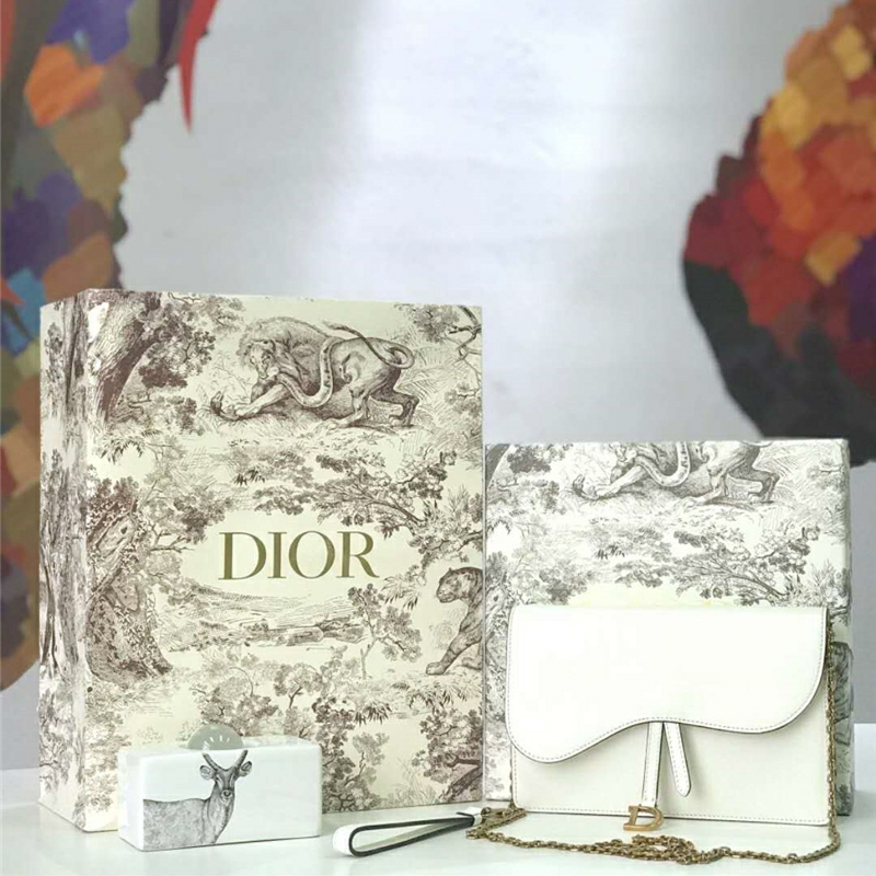 M5620 Dior Saddle系列女包 woc包型 小牛皮 迪奧鏈條包 Dior手拿包 白色