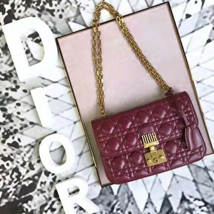 當前位置: 首頁>Dior|迪奧>Dior女包> M5818 Dior Addict女包 小羊皮 藤格紋 翻蓋式 迪奧手提包 棗紅色