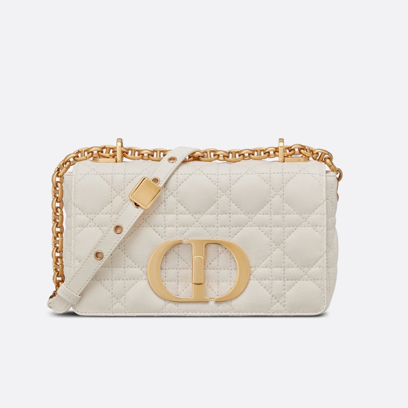 • M9241 迪奧DIOR CARO 小號手袋 柔軟牛皮革藤格紋 白色