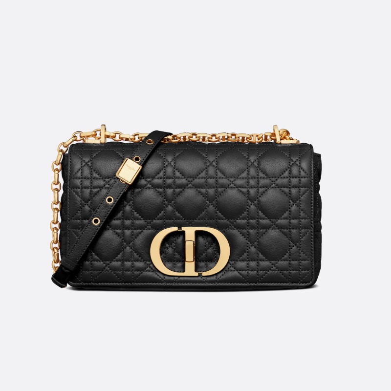 • M9242 迪奧DIOR CARO 中號手袋 柔軟牛皮革藤格紋 黑色