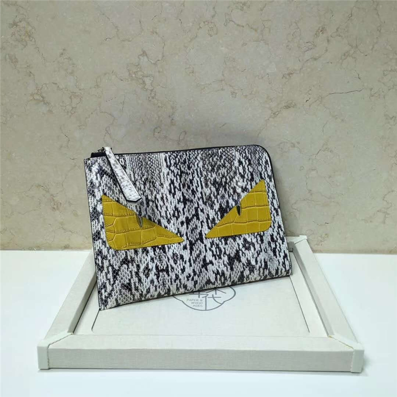 • 詳細介紹:FENDI 芬迪 小怪獸眼睛全蛇皮拉鏈手拿包,鑲嵌打造出 BAG BUGS 眼睛造型裝飾細節,拉鏈封口。新潮的品牌格調,趣味細節設計、高雅的風格,展現意大利的絢麗風情,手感豐富細膩,注重細節的匠心制作,展現手袋驚喜之處。皮革襯里,絎縫整齊,利落干練,精致油邊,別致細節元素,意式美學,新潮惹眼