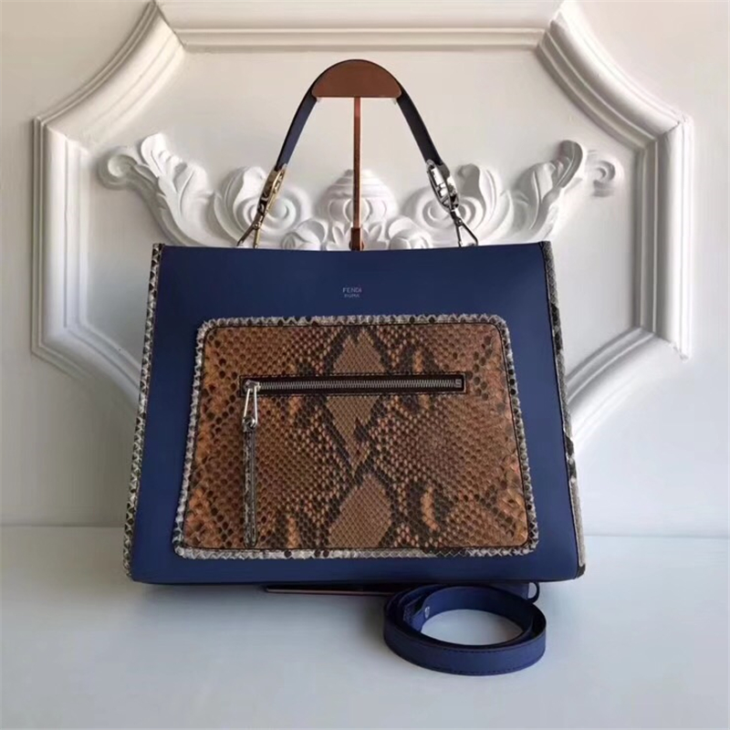 • 詳細介紹:Fendi 0396AL AS fendiRUNAWAY手提袋,手柄和肩帶綴以最新FENDI F 金銀色LOGO五金,兩者皆可拆卸,前袋全蛇皮配有拉鏈,四邊也飾以蛇皮
