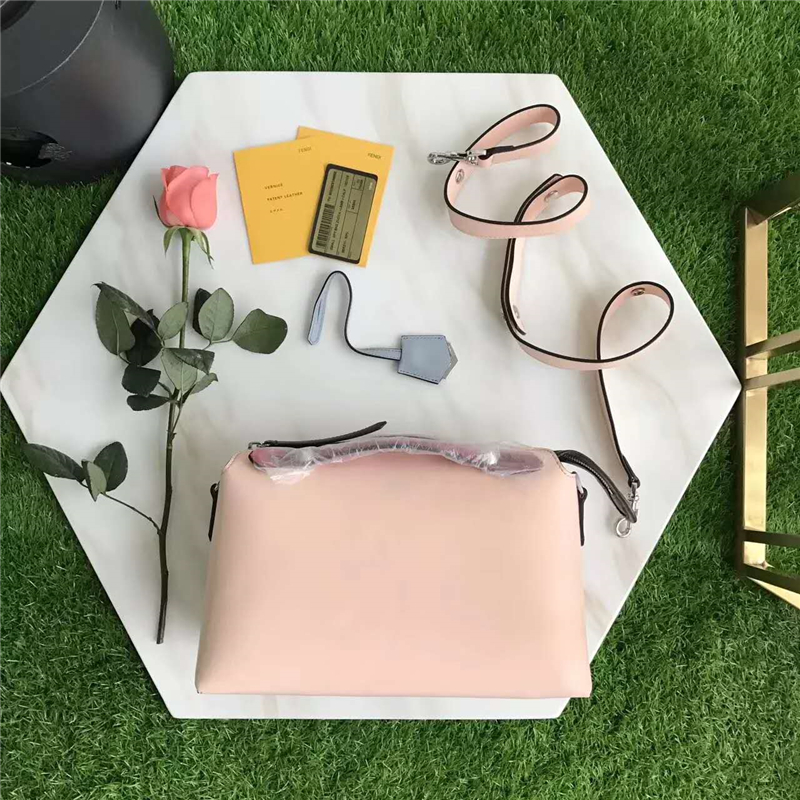 • 149S FENDI 芬迪 2017新款 柔軟小牛皮 拼色波士頓手提包挎包 裸粉拼灰