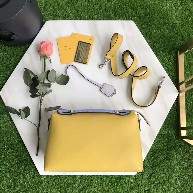 149S FENDI 芬迪 2017新款 柔軟小牛皮 拼色波士頓手提包挎包 檸檬黃拼白