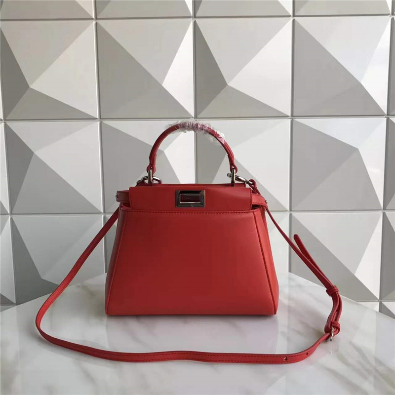 • 2590 FENDI 芬迪 軟羊皮革手提包 兩個(gè)內(nèi)袋 金屬配件 紅色