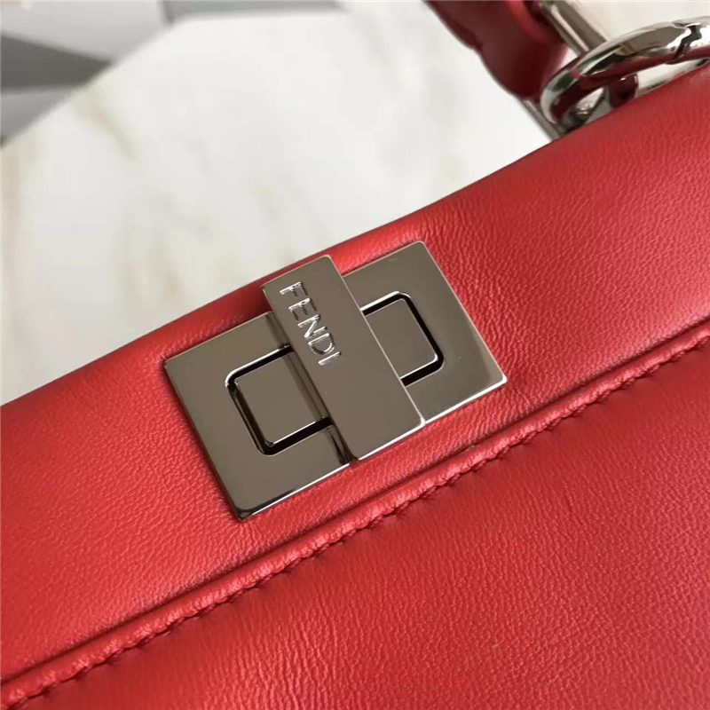 2590 FENDI 芬迪 軟羊皮革手提包 兩個(gè)內(nèi)袋 金屬配件 紅色