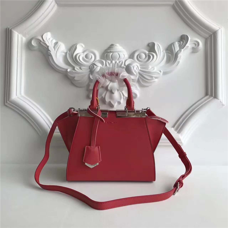 279 FENDI 芬迪 迷你柔軟小牛皮 購物包 彩色毛邊 軟羊革襯里 紅色